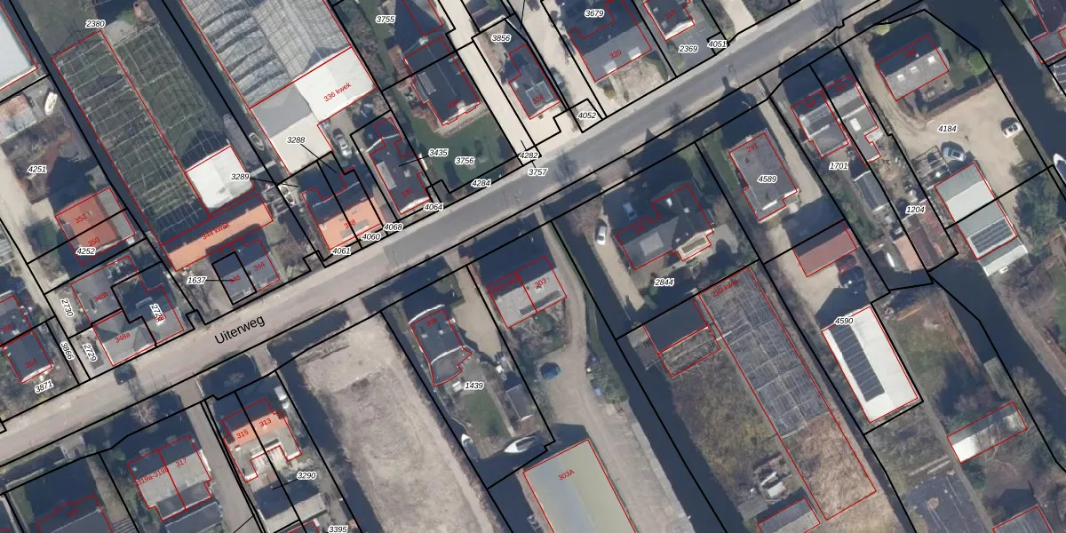 Het perceel waarop Uiterweg 303 staat heeft een oppervlakte van 9290 m². Dit is een zeer groot perceel. De perceeloppervlakte wordt geregistreerd door het Kadaster. Gedetailleerde informatie over de maten van dit perceel kunt u vinden in het rapport Kadastrale kaart met maatvoering van Uiterweg 303.