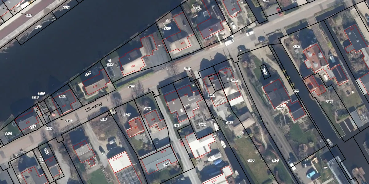 Het perceel waarop Uiterweg 361 staat heeft een oppervlakte van 385 m². Dit is een groot perceel. De perceeloppervlakte wordt geregistreerd door het Kadaster. Gedetailleerde informatie over de maten van dit perceel kunt u vinden in het rapport Kadastrale kaart met maatvoering van Uiterweg 361.