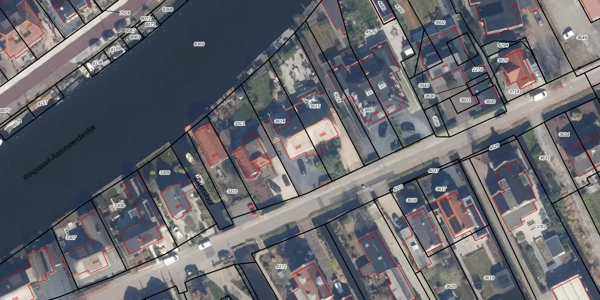 Uiterweg 390 is gelegen op kadastraal perceel AMR03H3614. Deze kadastrale aanduiding is uniek en wordt gebruikt door het Kadaster om eigendomsrechten en andere zakelijke rechten vast te leggen. Het perceel maakt onderdeel uit van de kadastrale gemeente Aalsmeer.