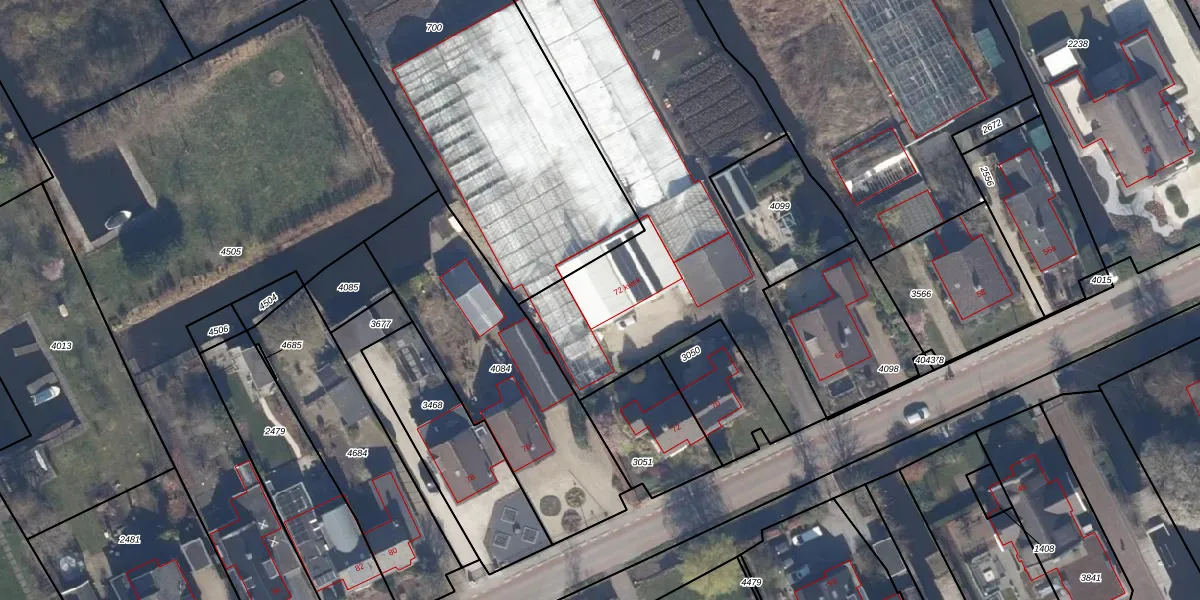 Gebruik de zoekbalk of klik op een perceel voor informatie over de adressen binnen dit perceel.