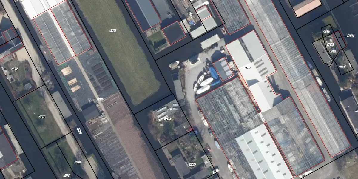 Het adres ligt op het perceel AMR03-H-4594, dat zich in de kadastrale gemeente Aalsmeer bevindt. Het perceel is met 9794 m² relatief groot. Het gemiddelde ligt in de kadastrale gemeente Aalsmeer op 1740,02 m². Het kleinste perceel in de kadastrale gemeente is 0 m² groot. De grootste perceeloppervlakte is 98,4 ha. Op het perceel zijn 2 adressen aanwezig. De huidige grenzen van het perceel zijn digitaal in de Basisregistratie Kadaster (BRK) geregistreerd op 15-08-2023.