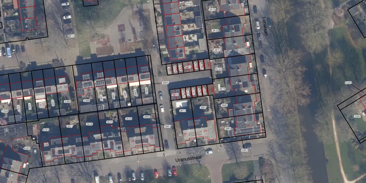 Het perceel waarop Uranusstraat 23-L staat heeft een oppervlakte van 18 m². Dit is een klein perceel. De perceeloppervlakte wordt geregistreerd door het Kadaster. Gedetailleerde informatie over de maten van dit perceel kunt u vinden in het rapport Kadastrale kaart met maatvoering van Uranusstraat 23-L.