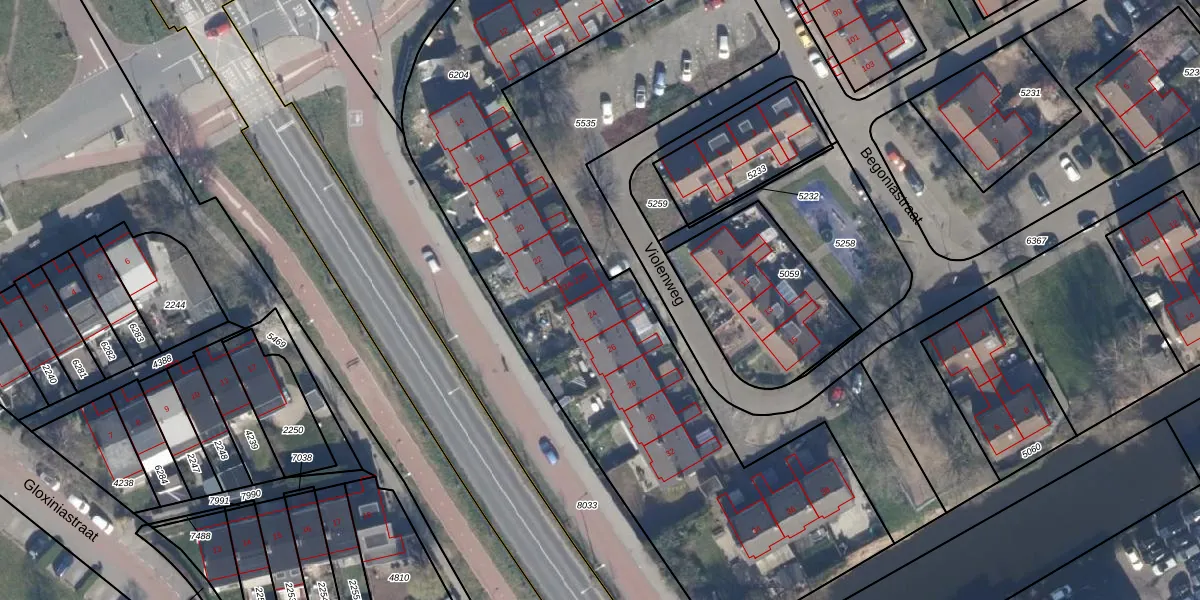 Het perceel waarop Violenweg 24 staat heeft een oppervlakte van 3290 m². Dit is een zeer groot perceel. De perceeloppervlakte wordt geregistreerd door het Kadaster. Gedetailleerde informatie over de maten van dit perceel kunt u vinden in het rapport Kadastrale kaart met maatvoering van Violenweg 24.