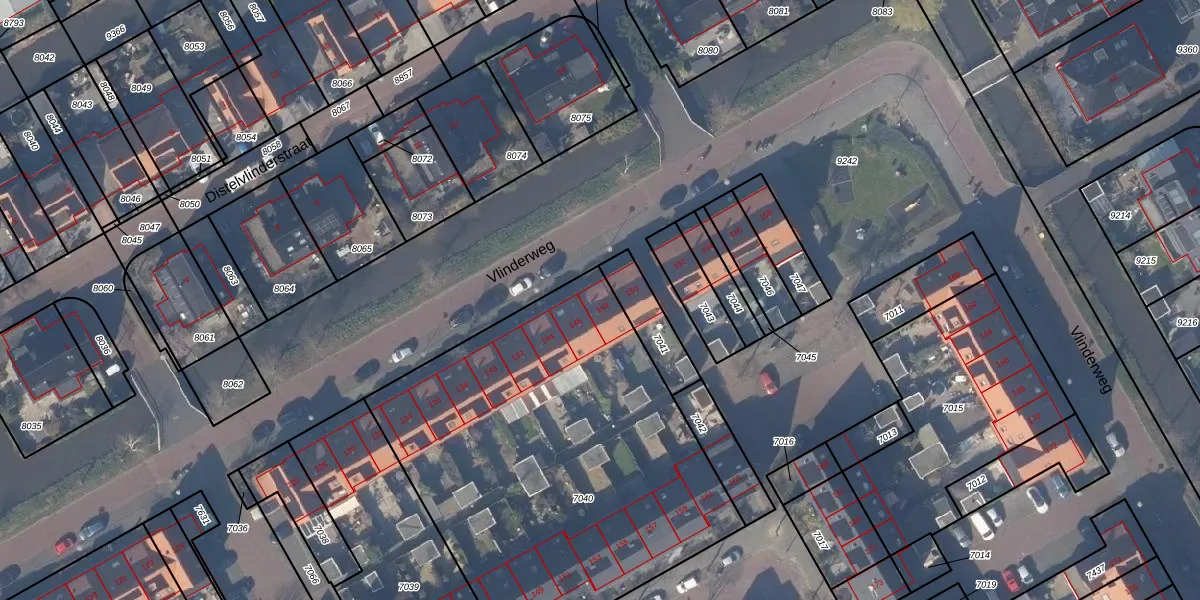 Het perceel waarop Vlinderweg 148 staat heeft een oppervlakte van 2245 m². Dit is een zeer groot perceel. De perceeloppervlakte wordt geregistreerd door het Kadaster. Gedetailleerde informatie over de maten van dit perceel kunt u vinden in het rapport Kadastrale kaart met maatvoering van Vlinderweg 148.