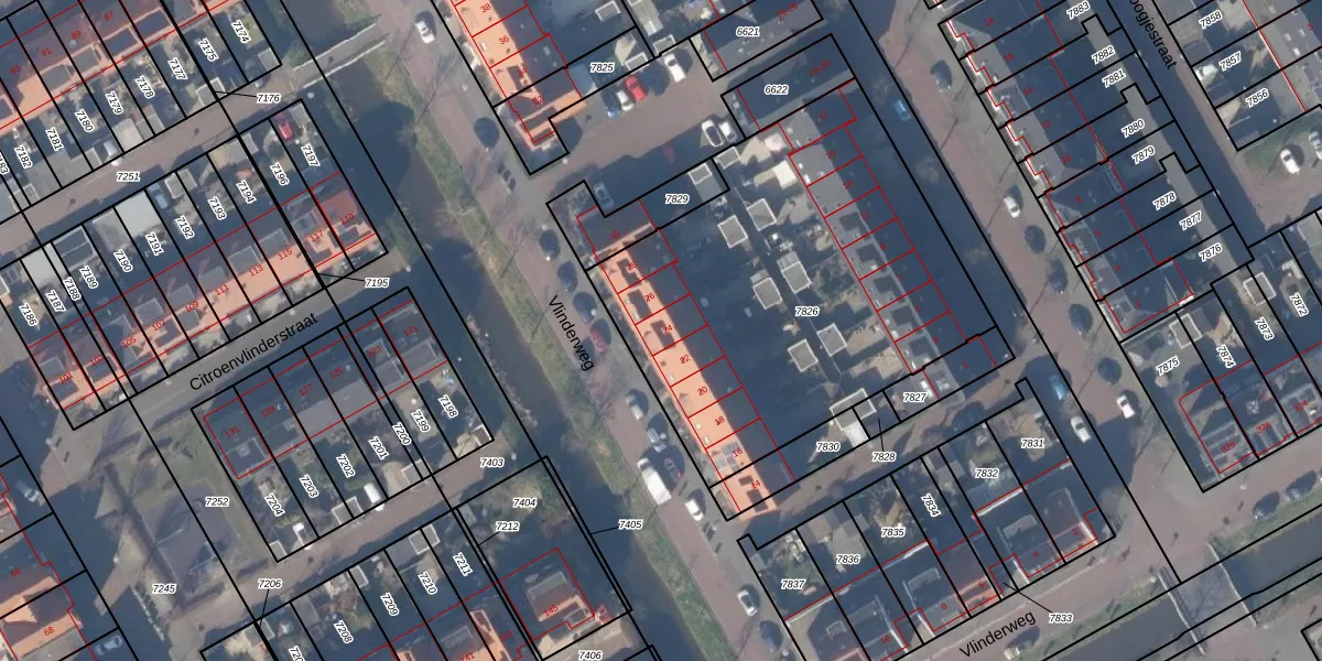 Vlinderweg 24 is gelegen op kadastraal perceel AMR03B7826. Deze kadastrale aanduiding is uniek en wordt gebruikt door het Kadaster om eigendomsrechten en andere zakelijke rechten vast te leggen. Het perceel maakt onderdeel uit van de kadastrale gemeente Aalsmeer.