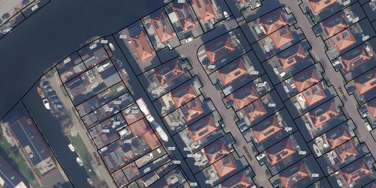 Het perceel waarop Werven 25 staat heeft een oppervlakte van 270 m². Dit is een middelgroot perceel. De perceeloppervlakte wordt geregistreerd door het Kadaster. Gedetailleerde informatie over de maten van dit perceel kunt u vinden in het rapport Kadastrale kaart met maatvoering van Werven 25.