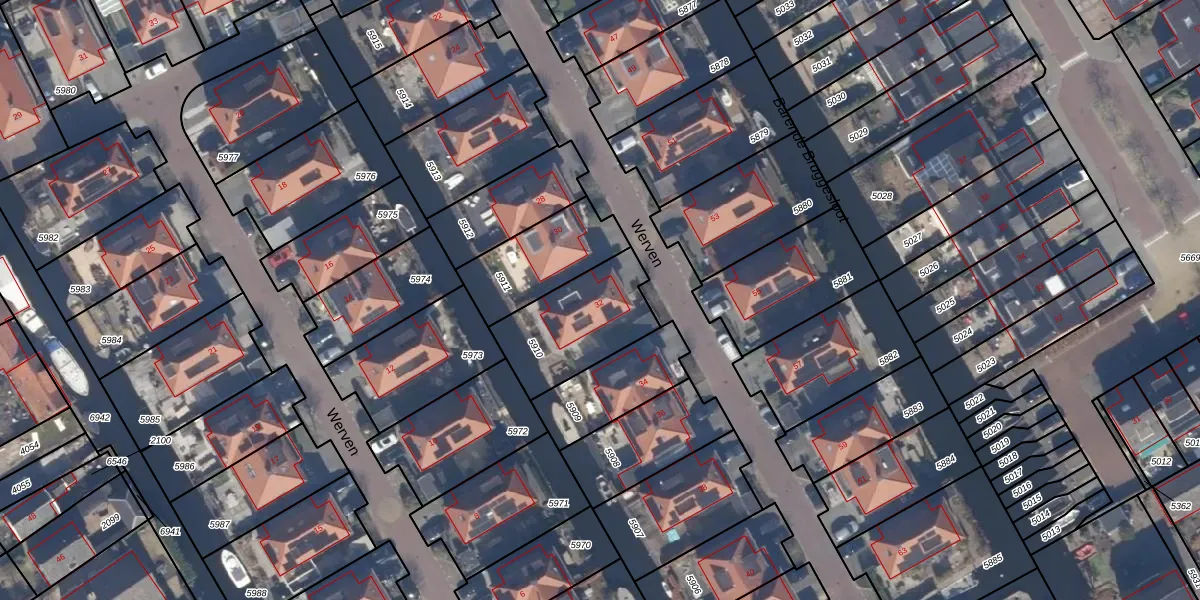 Het perceel waarop Werven 32 staat heeft een oppervlakte van 367 m². Dit is een groot perceel. De perceeloppervlakte wordt geregistreerd door het Kadaster. Gedetailleerde informatie over de maten van dit perceel kunt u vinden in het rapport Kadastrale kaart met maatvoering van Werven 32.