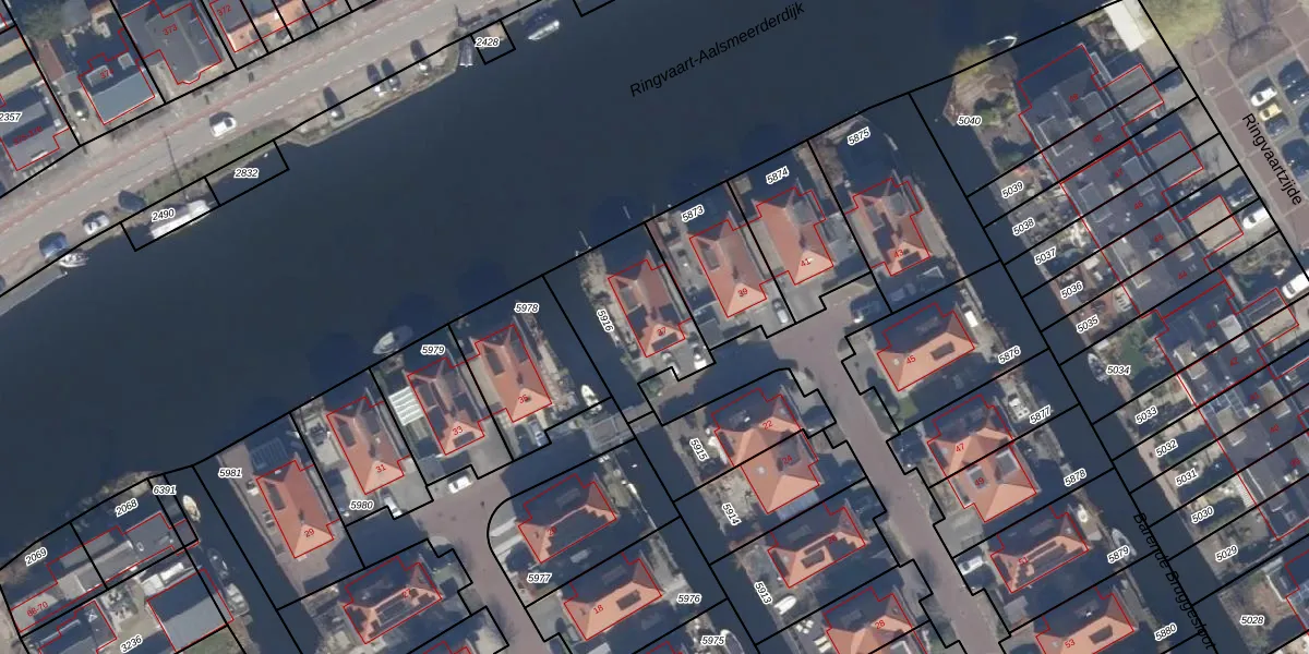 Het adres ligt op het perceel AMR03-G-5916, dat zich in de kadastrale gemeente Aalsmeer bevindt. Het perceel is 401 m² groot. Dat is kleiner dan de gemiddelde perceeloppervlakte in Aalsmeer, dat op 1740,02 m² ligt. De grootste perceeloppervlakte in de kadastrale gemeente is 98,4 ha. De kleinste oppervlakte bedraagt 0 m². Op het perceel bevinden zich geen andere adressen. De huidige grenzen van het perceel zijn digitaal in de Basisregistratie Kadaster (BRK) geregistreerd op 08-10-2009.
