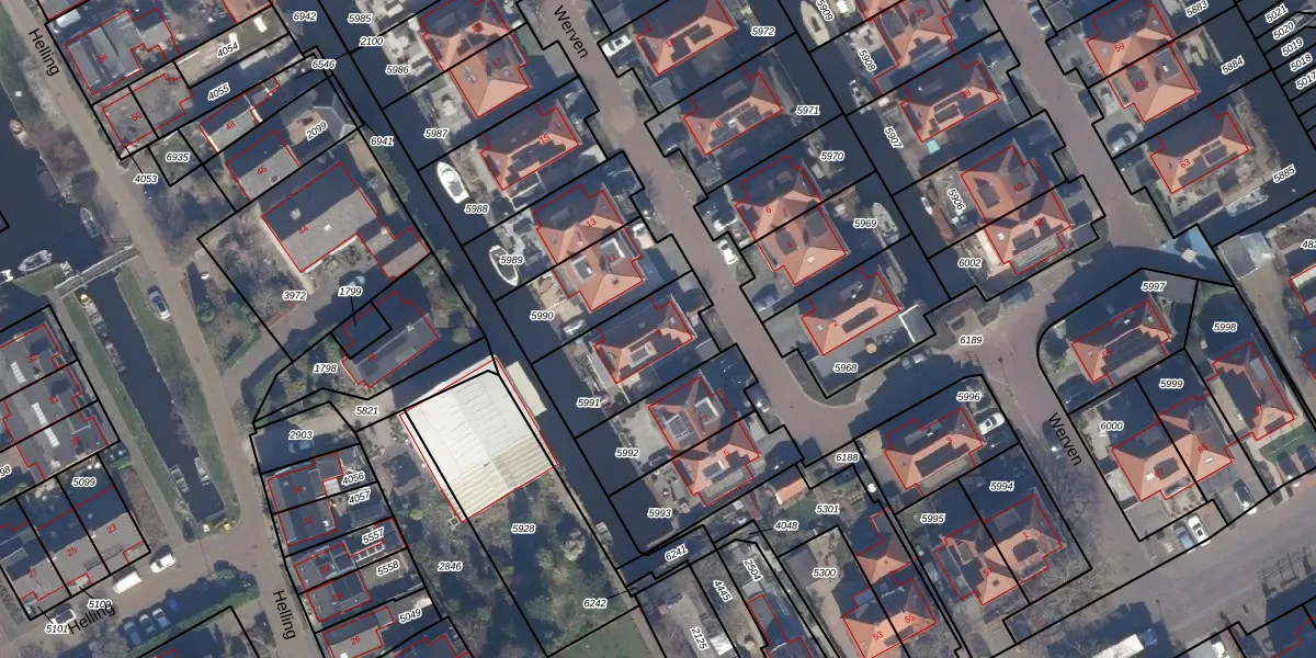 Het perceel waarop Werven 9 staat heeft een oppervlakte van 355 m². Dit is een groot perceel. De perceeloppervlakte wordt geregistreerd door het Kadaster. Gedetailleerde informatie over de maten van dit perceel kunt u vinden in het rapport Kadastrale kaart met maatvoering van Werven 9.