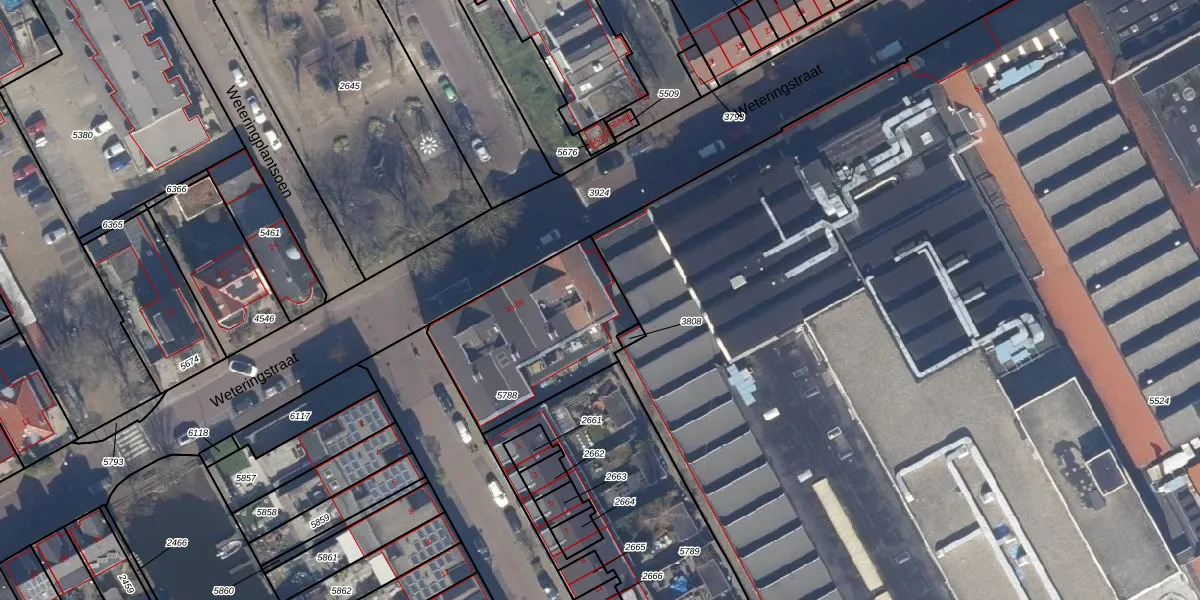 Het perceel waarop Weteringstraat 42 staat heeft een oppervlakte van 620 m². Dit is een groot perceel. De perceeloppervlakte wordt geregistreerd door het Kadaster. Gedetailleerde informatie over de maten van dit perceel kunt u vinden in het rapport Kadastrale kaart met maatvoering van Weteringstraat 42.