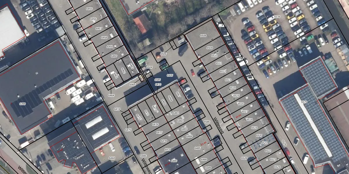 Het perceel waarop Witteweg 21 staat heeft een oppervlakte van 81 m². Dit is een klein perceel. De perceeloppervlakte wordt geregistreerd door het Kadaster. Gedetailleerde informatie over de maten van dit perceel kunt u vinden in het rapport Kadastrale kaart met maatvoering van Witteweg 21.