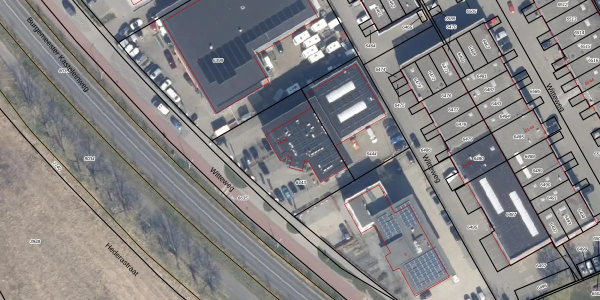 Het perceel waarop Witteweg 4-B staat heeft een oppervlakte van 1021 m². Dit is een zeer groot perceel. De perceeloppervlakte wordt geregistreerd door het Kadaster. Gedetailleerde informatie over de maten van dit perceel kunt u vinden in het rapport Kadastrale kaart met maatvoering van Witteweg 4-B.