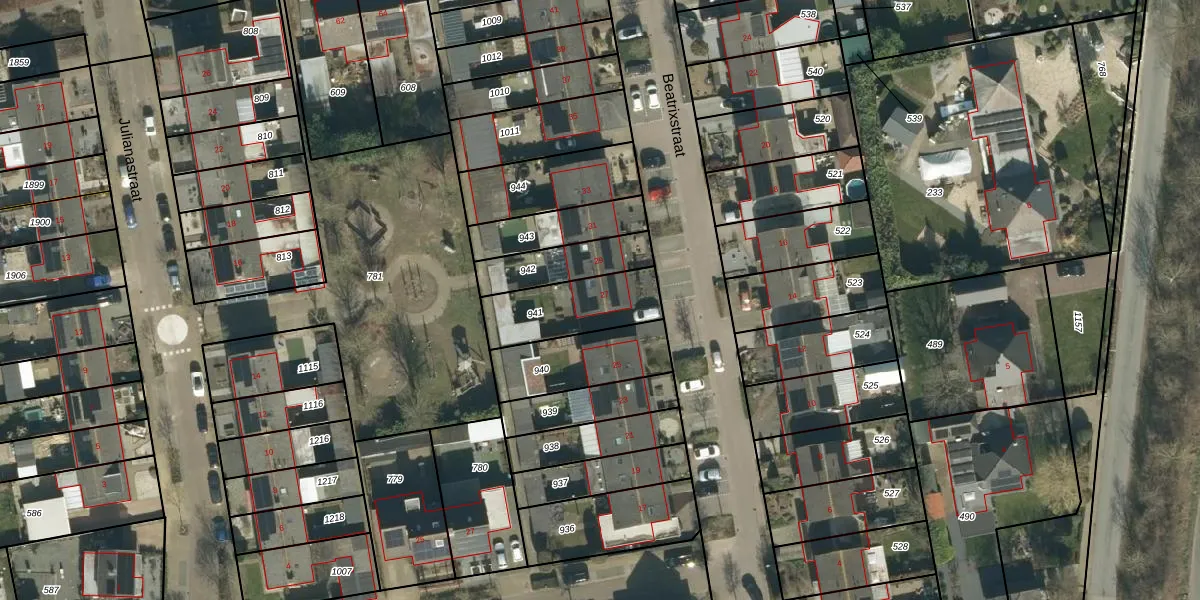 Het perceel waarop Beatrixstraat 27 staat heeft een oppervlakte van 245 m². Dit is een middelgroot perceel. De perceeloppervlakte wordt geregistreerd door het Kadaster. Gedetailleerde informatie over de maten van dit perceel kunt u vinden in het rapport Kadastrale kaart met maatvoering van Beatrixstraat 27.