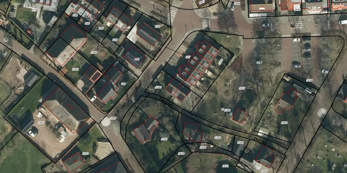 Het perceel waarop Delpad 1 staat heeft een oppervlakte van 365 m². Dit is een groot perceel. De perceeloppervlakte wordt geregistreerd door het Kadaster. Gedetailleerde informatie over de maten van dit perceel kunt u vinden in het rapport Kadastrale kaart met maatvoering van Delpad 1.