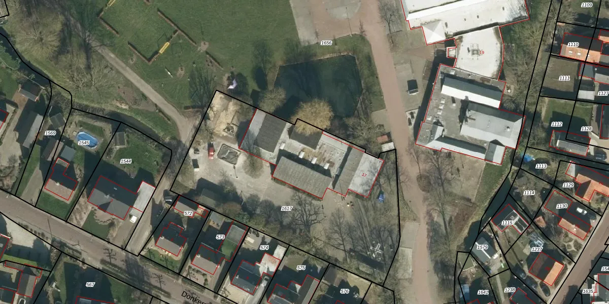 Donkerstraat 17 is gelegen op kadastraal perceel AAL02A1617. Deze kadastrale aanduiding is uniek en wordt gebruikt door het Kadaster om eigendomsrechten en andere zakelijke rechten vast te leggen. Het perceel maakt onderdeel uit van de kadastrale gemeente Aalst Gelderland.