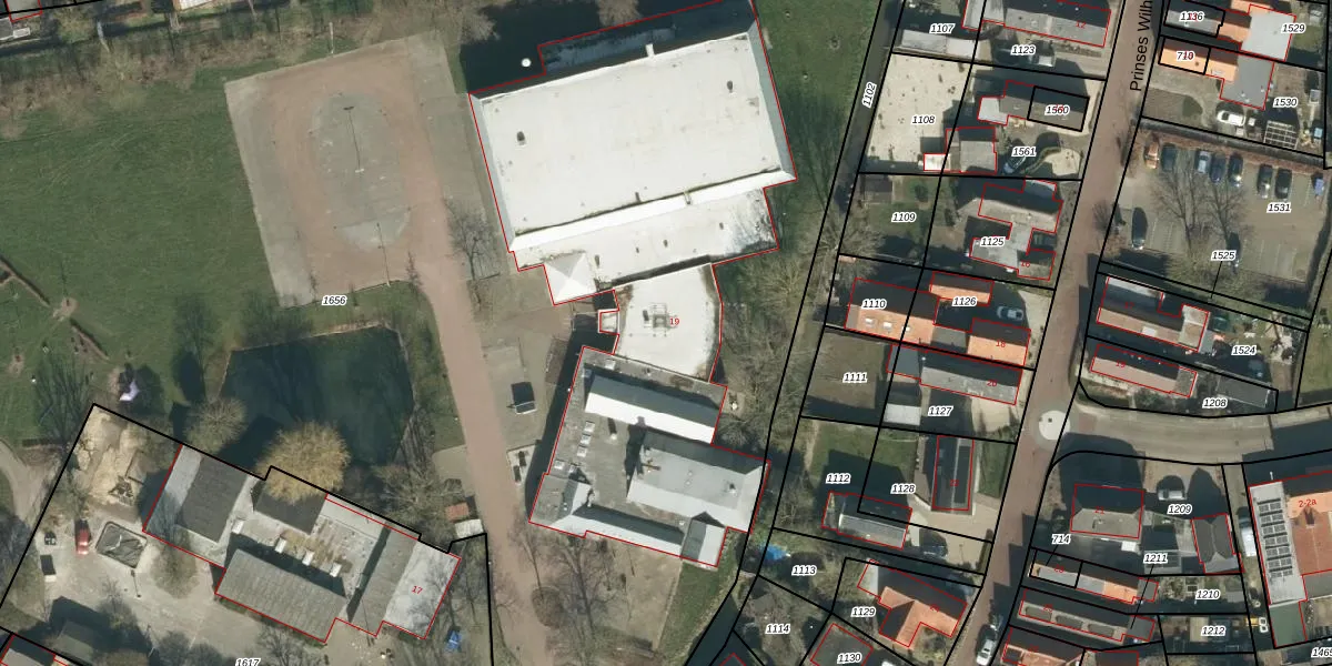 Het perceel waarop Donkerstraat 19 staat heeft een oppervlakte van 1,6 ha. Dit is een zeer groot perceel. De perceeloppervlakte wordt geregistreerd door het Kadaster. Gedetailleerde informatie over de maten van dit perceel kunt u vinden in het rapport Kadastrale kaart met maatvoering van Donkerstraat 19.