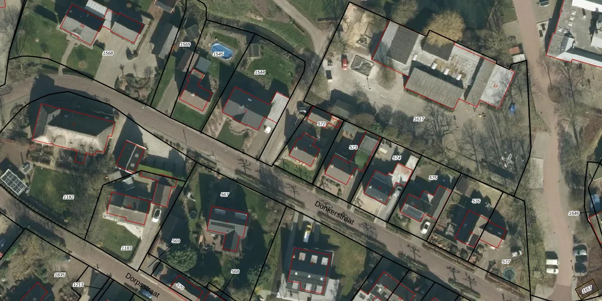 Donkerstraat 5 is gelegen op kadastraal perceel BKL08L572. Deze kadastrale aanduiding is uniek en wordt gebruikt door het Kadaster om eigendomsrechten en andere zakelijke rechten vast te leggen. Het perceel maakt onderdeel uit van de kadastrale gemeente Brakel.