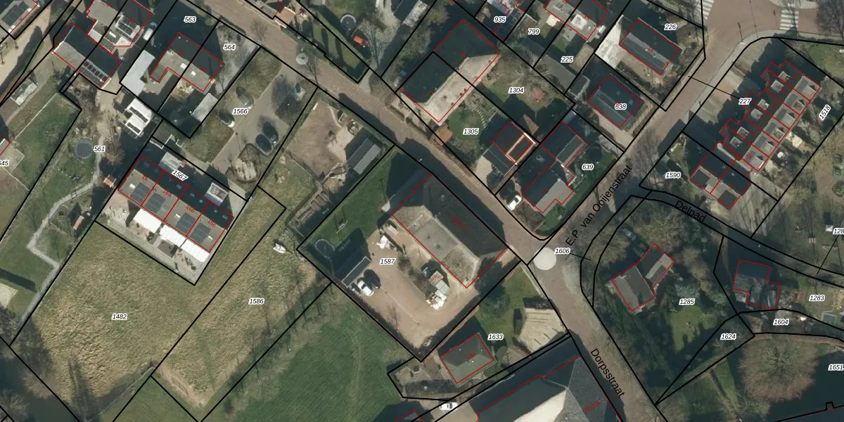 Het perceel waarop Dorpsstraat 16-d staat heeft een oppervlakte van 1300 m². Dit is een zeer groot perceel. De perceeloppervlakte wordt geregistreerd door het Kadaster. Gedetailleerde informatie over de maten van dit perceel kunt u vinden in het rapport Kadastrale kaart met maatvoering van Dorpsstraat 16-d.