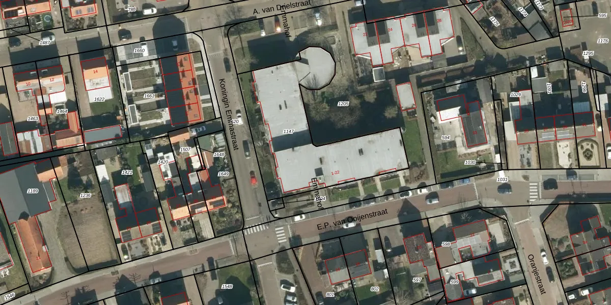 Het perceel waarop Emmahof 7 staat heeft een oppervlakte van 1345 m². Dit is een zeer groot perceel. De perceeloppervlakte wordt geregistreerd door het Kadaster. Gedetailleerde informatie over de maten van dit perceel kunt u vinden in het rapport Kadastrale kaart met maatvoering van Emmahof 7.