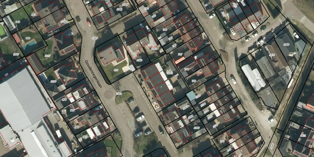Het perceel waarop Goudenregenlaan 56 staat heeft een oppervlakte van 787 m². Dit is een groot perceel. De perceeloppervlakte wordt geregistreerd door het Kadaster. Gedetailleerde informatie over de maten van dit perceel kunt u vinden in het rapport Kadastrale kaart met maatvoering van Goudenregenlaan 56.