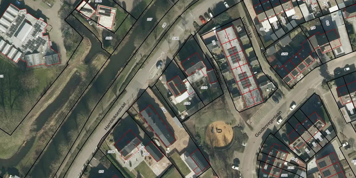 Het perceel waarop Hambloksestraat 56 staat heeft een oppervlakte van 475 m². Dit is een groot perceel. De perceeloppervlakte wordt geregistreerd door het Kadaster. Gedetailleerde informatie over de maten van dit perceel kunt u vinden in het rapport Kadastrale kaart met maatvoering van Hambloksestraat 56.