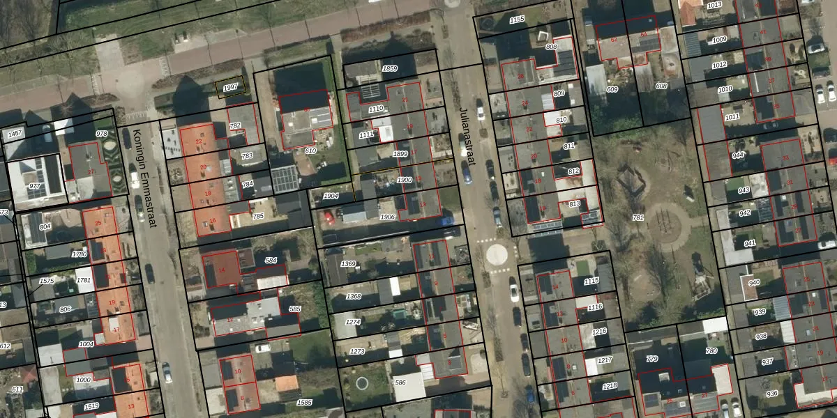 Het perceel waarop Julianastraat 13 staat heeft een oppervlakte van 345 m². Dit is een groot perceel. De perceeloppervlakte wordt geregistreerd door het Kadaster. Gedetailleerde informatie over de maten van dit perceel kunt u vinden in het rapport Kadastrale kaart met maatvoering van Julianastraat 13.