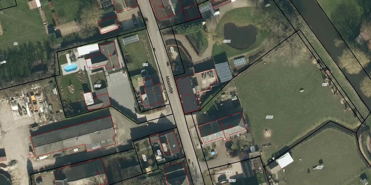 Het perceel waarop Maasdijk 102 staat heeft een oppervlakte van 2555 m². Dit is een zeer groot perceel. De perceeloppervlakte wordt geregistreerd door het Kadaster. Gedetailleerde informatie over de maten van dit perceel kunt u vinden in het rapport Kadastrale kaart met maatvoering van Maasdijk 102.