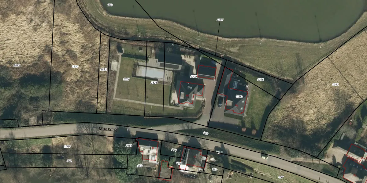 Het perceel waarop Maasdijk 68 staat heeft een oppervlakte van 1155 m². Dit is een zeer groot perceel. De perceeloppervlakte wordt geregistreerd door het Kadaster. Gedetailleerde informatie over de maten van dit perceel kunt u vinden in het rapport Kadastrale kaart met maatvoering van Maasdijk 68.
