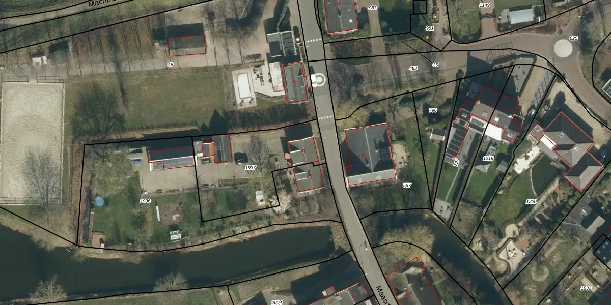 Het perceel waarop Maasdijk 97 staat heeft een oppervlakte van 905 m². Dit is een groot perceel. De perceeloppervlakte wordt geregistreerd door het Kadaster. Gedetailleerde informatie over de maten van dit perceel kunt u vinden in het rapport Kadastrale kaart met maatvoering van Maasdijk 97.
