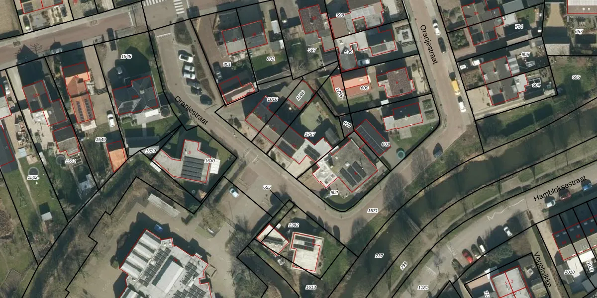 Gebruik de zoekbalk of klik op een perceel voor informatie over de adressen binnen dit perceel.