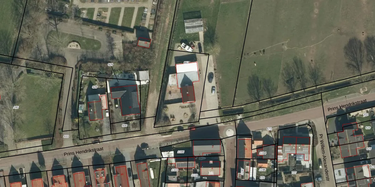 Het perceel waarop Prins Hendrikstraat 21 staat heeft een oppervlakte van 915 m². Dit is een groot perceel. De perceeloppervlakte wordt geregistreerd door het Kadaster. Gedetailleerde informatie over de maten van dit perceel kunt u vinden in het rapport Kadastrale kaart met maatvoering van Prins Hendrikstraat 21.
