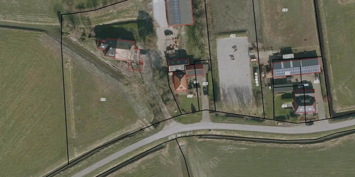 Het adres is gelegen op perceel 187 in de sectie G en de kadastrale gemeente Ee. De kadastrale aanduiding is aldus EEX00-G-187. Het perceel is kleiner dan gemiddeld in Ee. Het perceel is 320 m² groot, terwijl het gemiddelde ligt op 1,0 ha. Het kleinste perceel in de kadastrale gemeente is 1 m² groot. De grootste perceeloppervlakte is 24,3 ha. Er zijn geen andere adressen aanwezig op het perceel. De laatste wijziging in het de Basisregistratie Kadaster (BRK) was op 15-01-1998.