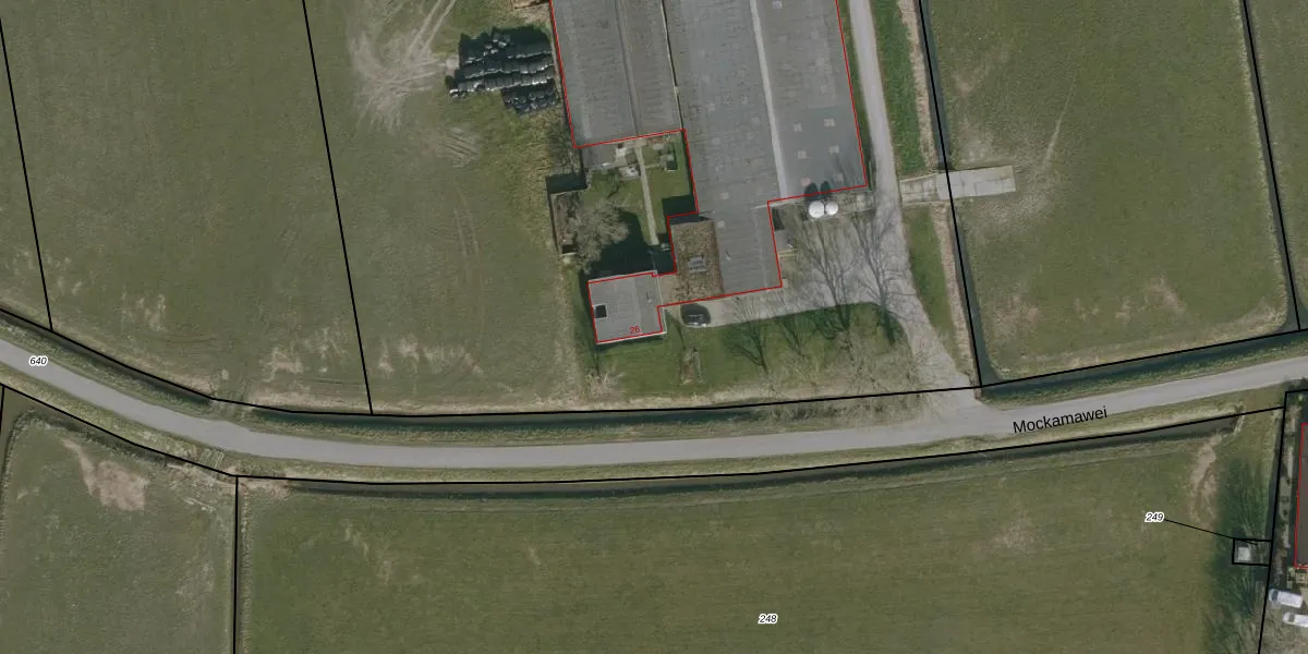 Het perceel waarop Mockamawei 26 staat heeft een oppervlakte van 2,0 ha. Dit is een zeer groot perceel. De perceeloppervlakte wordt geregistreerd door het Kadaster. Gedetailleerde informatie over de maten van dit perceel kunt u vinden in het rapport Kadastrale kaart met maatvoering van Mockamawei 26.