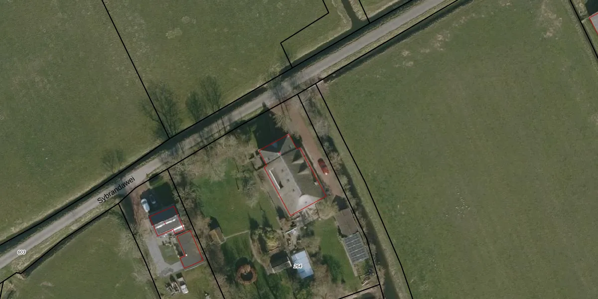 Het perceel waarop Sybrandawei 3 staat heeft een oppervlakte van 3310 m². Dit is een zeer groot perceel. De perceeloppervlakte wordt geregistreerd door het Kadaster. Gedetailleerde informatie over de maten van dit perceel kunt u vinden in het rapport Kadastrale kaart met maatvoering van Sybrandawei 3.