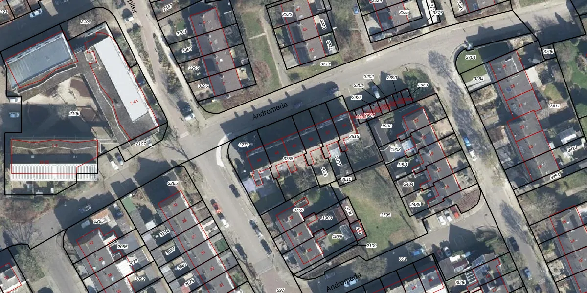 Het perceel waarop Andromeda 48 staat heeft een oppervlakte van 328 m². Dit is een groot perceel. De perceeloppervlakte wordt geregistreerd door het Kadaster. Gedetailleerde informatie over de maten van dit perceel kunt u vinden in het rapport Kadastrale kaart met maatvoering van Andromeda 48.