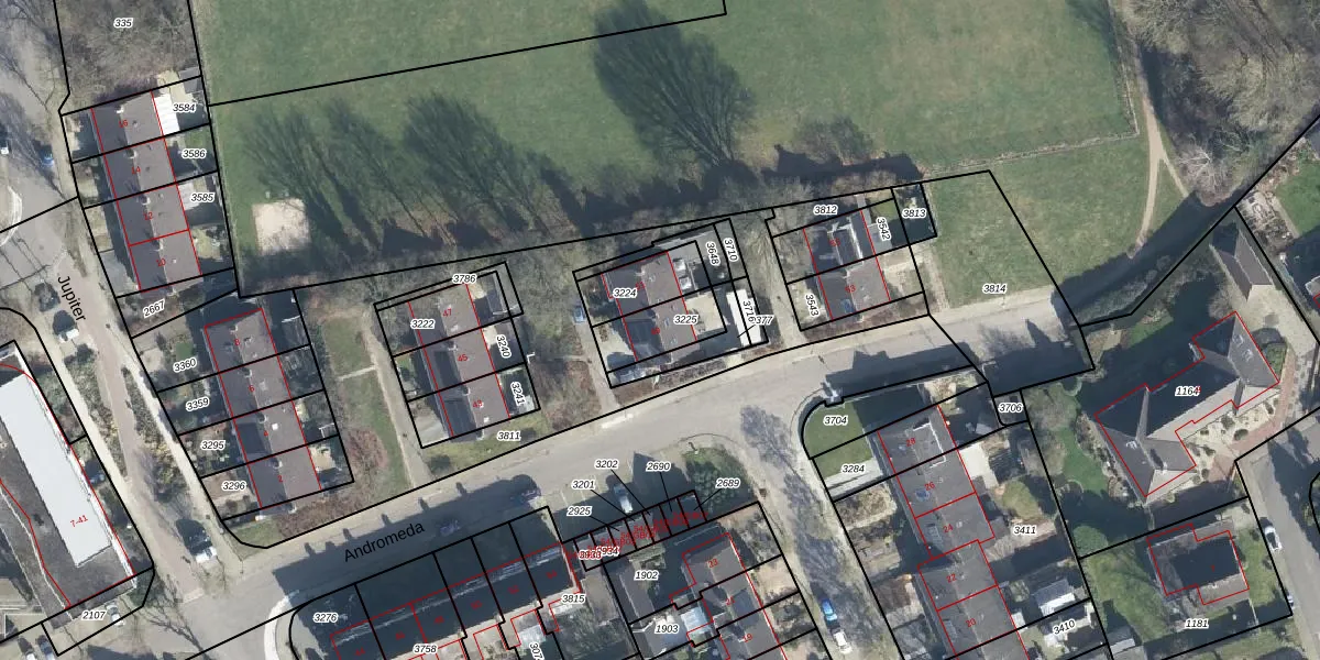Het perceel waarop Andromeda 49 staat heeft een oppervlakte van 143 m². Dit is een middelgroot perceel. De perceeloppervlakte wordt geregistreerd door het Kadaster. Gedetailleerde informatie over de maten van dit perceel kunt u vinden in het rapport Kadastrale kaart met maatvoering van Andromeda 49.