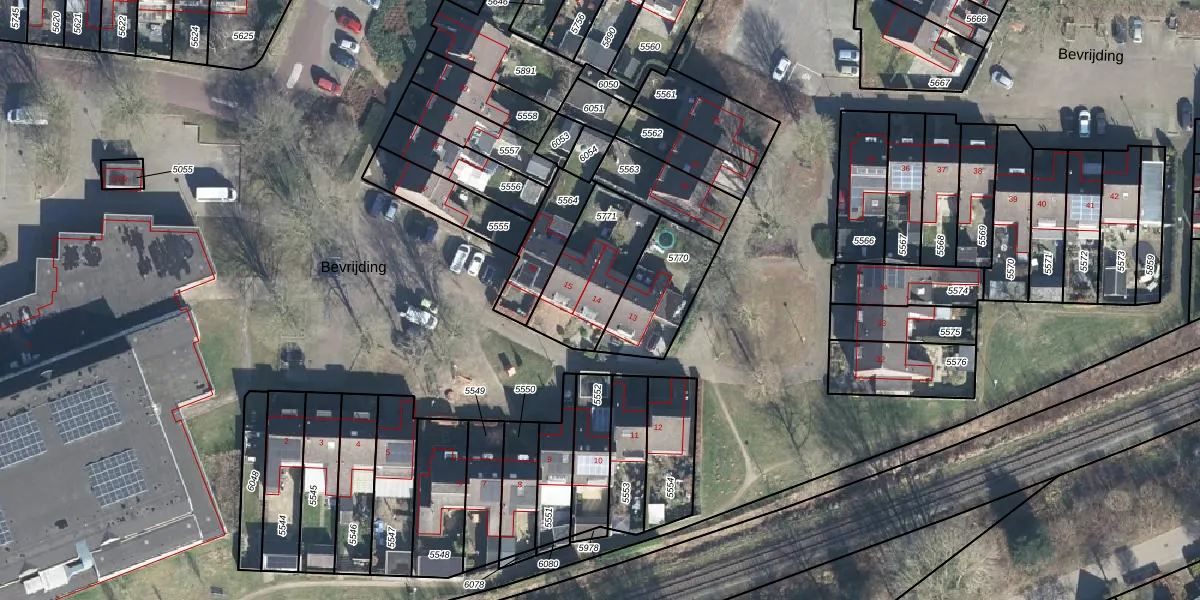 Het perceel waarop Bevrijding 14 staat heeft een oppervlakte van 324 m². Dit is een groot perceel. De perceeloppervlakte wordt geregistreerd door het Kadaster. Gedetailleerde informatie over de maten van dit perceel kunt u vinden in het rapport Kadastrale kaart met maatvoering van Bevrijding 14.