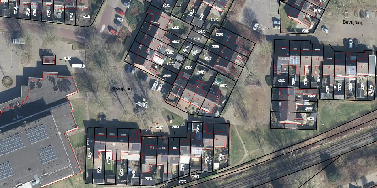 Het perceel waarop Bevrijding 15 staat heeft een oppervlakte van 324 m². Dit is een groot perceel. De perceeloppervlakte wordt geregistreerd door het Kadaster. Gedetailleerde informatie over de maten van dit perceel kunt u vinden in het rapport Kadastrale kaart met maatvoering van Bevrijding 15.