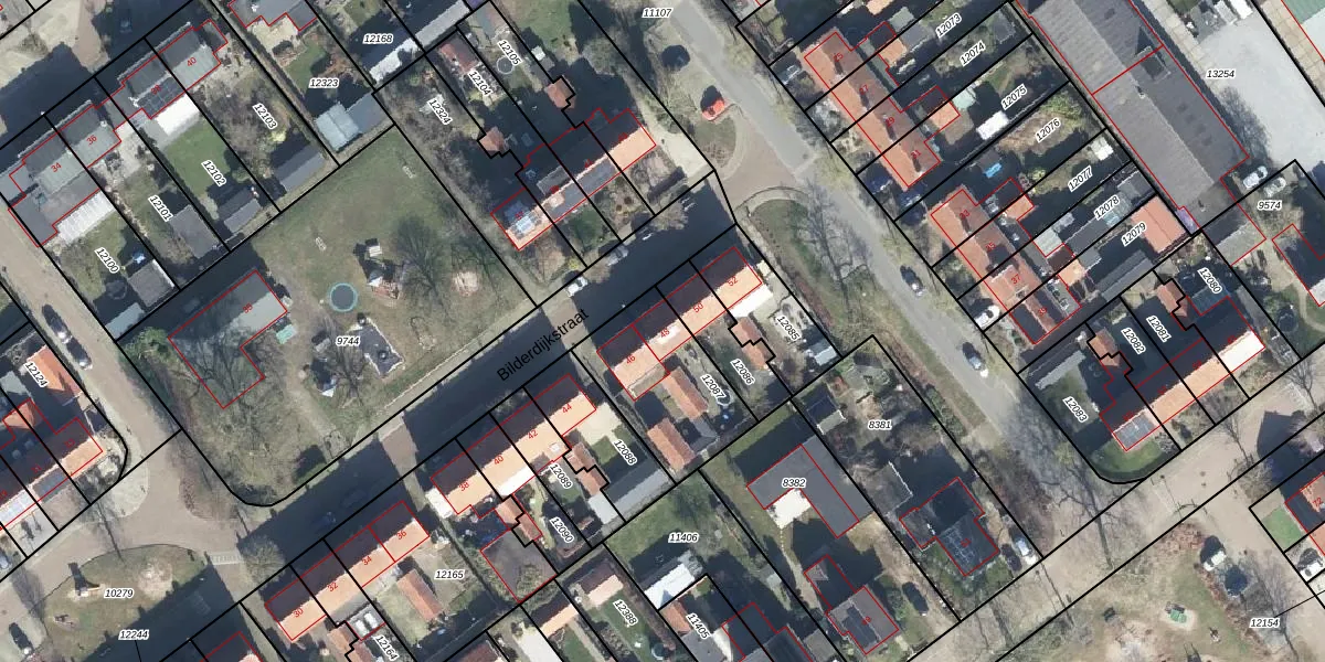 Het perceel waarop Bilderdijkstraat 48 staat heeft een oppervlakte van 415 m². Dit is een groot perceel. De perceeloppervlakte wordt geregistreerd door het Kadaster. Gedetailleerde informatie over de maten van dit perceel kunt u vinden in het rapport Kadastrale kaart met maatvoering van Bilderdijkstraat 48.