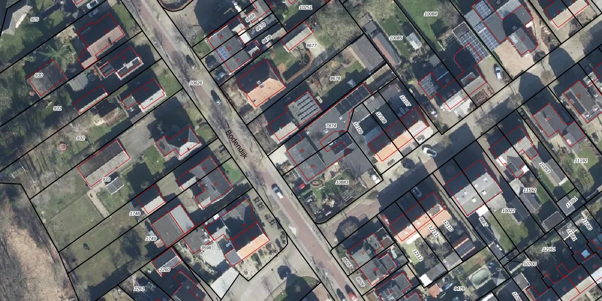 Het perceel waarop Bodendijk 33 staat heeft een oppervlakte van 352 m². Dit is een groot perceel. De perceeloppervlakte wordt geregistreerd door het Kadaster. Gedetailleerde informatie over de maten van dit perceel kunt u vinden in het rapport Kadastrale kaart met maatvoering van Bodendijk 33.