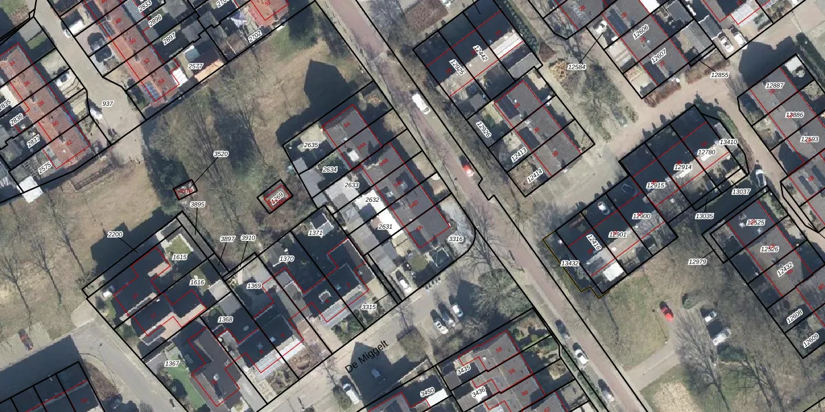 Gebruik de zoekbalk of klik op een perceel voor informatie over de adressen binnen dit perceel.