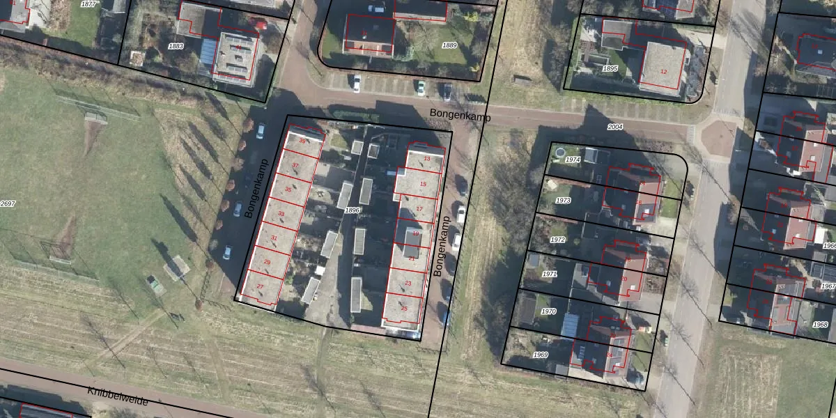 Het perceel waarop Bongenkamp 17 staat heeft een oppervlakte van 2088 m². Dit is een zeer groot perceel. De perceeloppervlakte wordt geregistreerd door het Kadaster. Gedetailleerde informatie over de maten van dit perceel kunt u vinden in het rapport Kadastrale kaart met maatvoering van Bongenkamp 17.