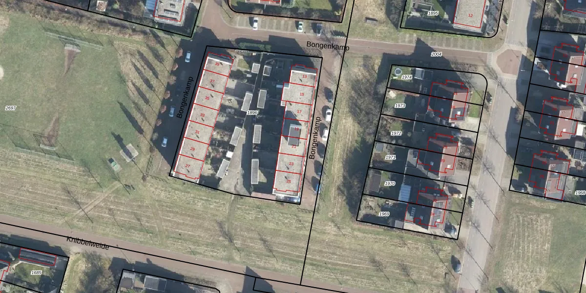 Het perceel waarop Bongenkamp 21 staat heeft een oppervlakte van 2088 m². Dit is een zeer groot perceel. De perceeloppervlakte wordt geregistreerd door het Kadaster. Gedetailleerde informatie over de maten van dit perceel kunt u vinden in het rapport Kadastrale kaart met maatvoering van Bongenkamp 21.