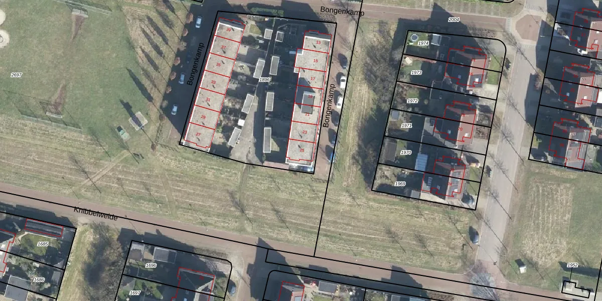 Het perceel waarop Bongenkamp 25 staat heeft een oppervlakte van 2088 m². Dit is een zeer groot perceel. De perceeloppervlakte wordt geregistreerd door het Kadaster. Gedetailleerde informatie over de maten van dit perceel kunt u vinden in het rapport Kadastrale kaart met maatvoering van Bongenkamp 25.
