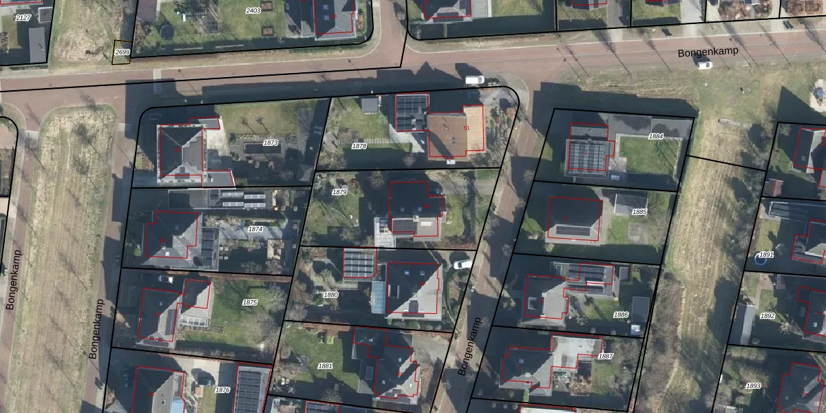 Het perceel waarop Bongenkamp 49 staat heeft een oppervlakte van 840 m². Dit is een groot perceel. De perceeloppervlakte wordt geregistreerd door het Kadaster. Gedetailleerde informatie over de maten van dit perceel kunt u vinden in het rapport Kadastrale kaart met maatvoering van Bongenkamp 49.