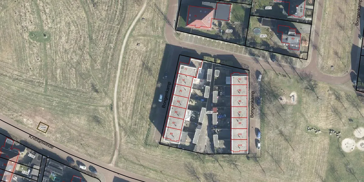 Het perceel waarop Bongenkamp 81 staat heeft een oppervlakte van 2180 m². Dit is een zeer groot perceel. De perceeloppervlakte wordt geregistreerd door het Kadaster. Gedetailleerde informatie over de maten van dit perceel kunt u vinden in het rapport Kadastrale kaart met maatvoering van Bongenkamp 81.
