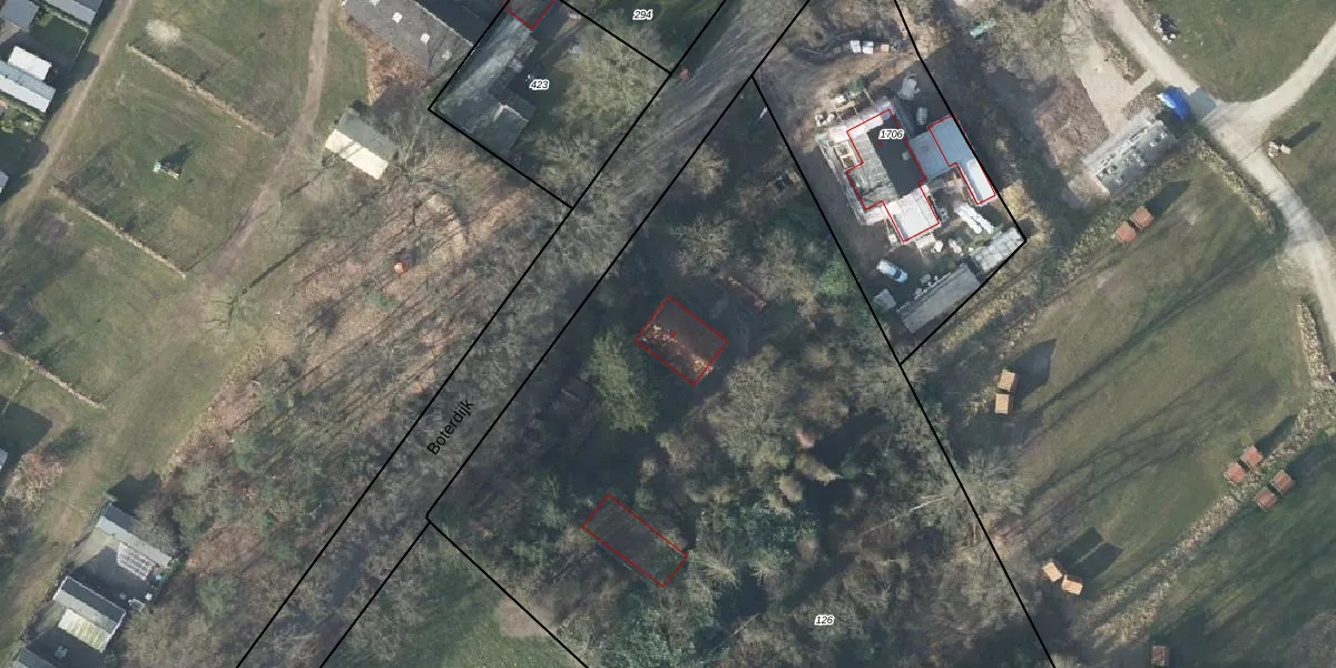 Het perceel waarop Boterdijk 4 staat heeft een oppervlakte van 8120 m². Dit is een zeer groot perceel. De perceeloppervlakte wordt geregistreerd door het Kadaster. Gedetailleerde informatie over de maten van dit perceel kunt u vinden in het rapport Kadastrale kaart met maatvoering van Boterdijk 4.