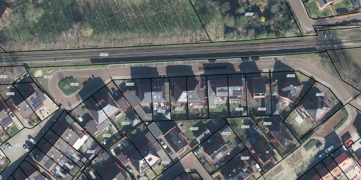 Brederostraat 13 is gelegen op kadastraal perceel ATN02I12646. Deze kadastrale aanduiding is uniek en wordt gebruikt door het Kadaster om eigendomsrechten en andere zakelijke rechten vast te leggen. Het perceel maakt onderdeel uit van de kadastrale gemeente Aalten.