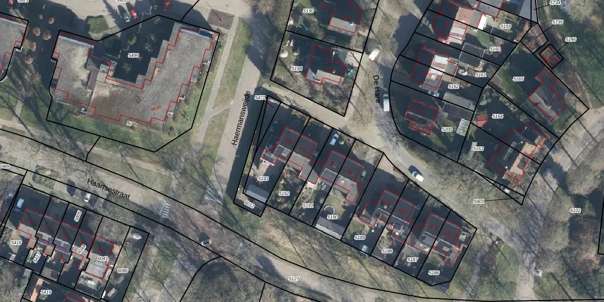 Gebruik de zoekbalk of klik op een perceel voor informatie over de adressen binnen dit perceel.