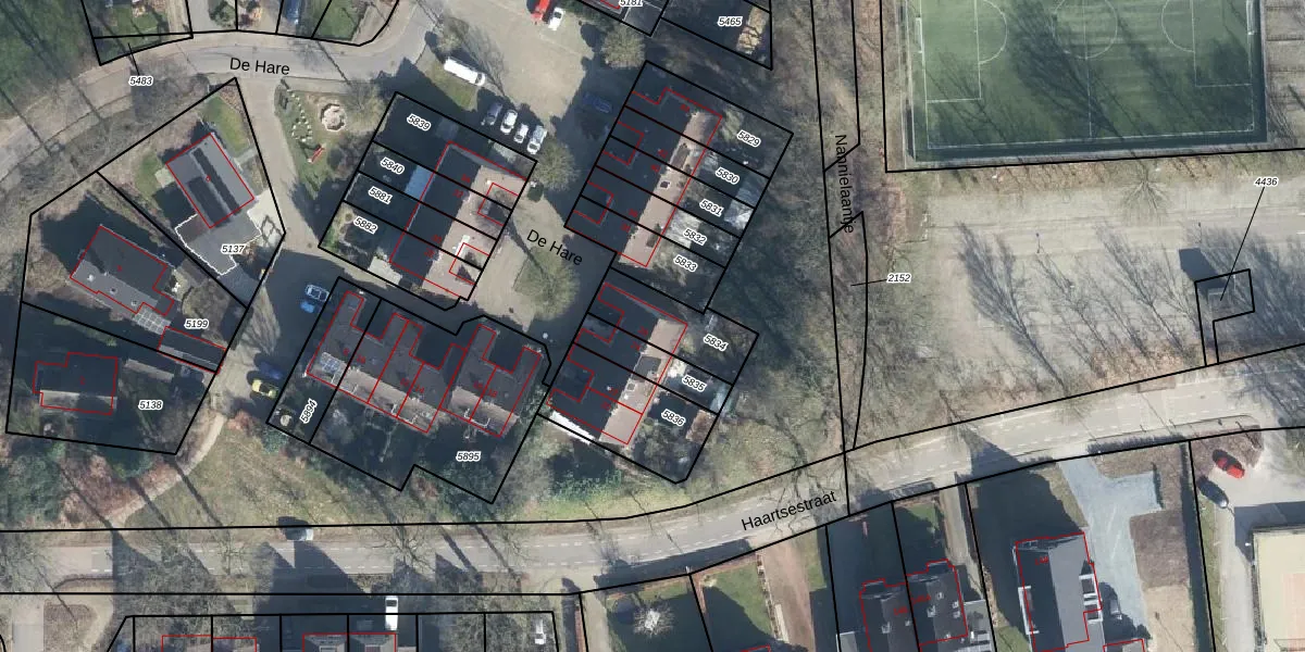 Gebruik de zoekbalk of klik op een perceel voor informatie over de adressen binnen dit perceel.